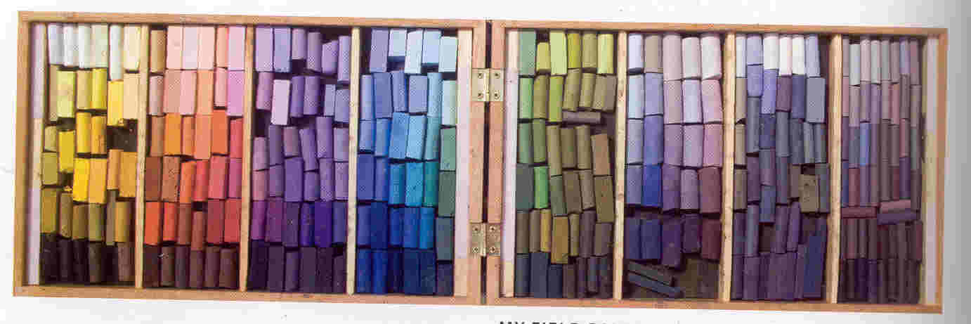 Richard McKinley, a working pro landscape painter, takes this set of pastels out on location with him. It is a pretty large kit...260 half sticks...but I have been told that he only uses a small selection from this kit to create his painting.